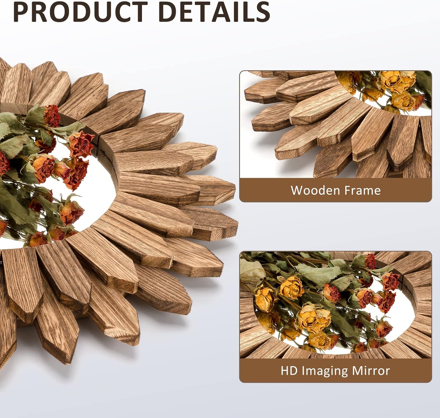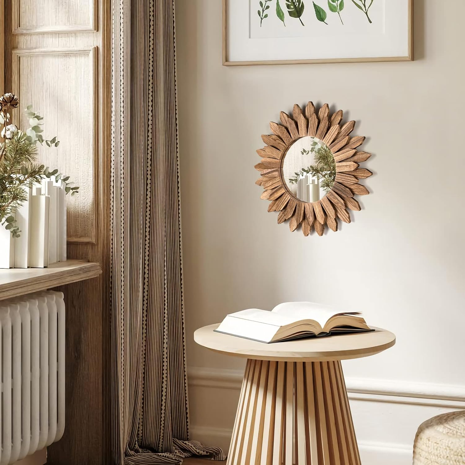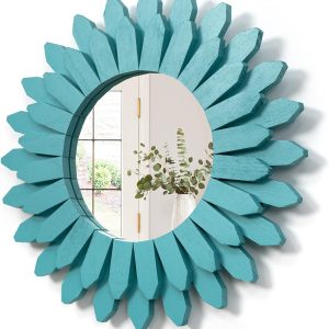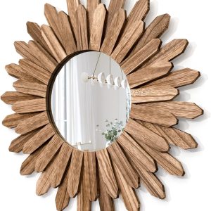 Boho Wall Decor Mirror: The design of wood sunburst base on the element of boho style, it will be a nice touch and goes well with your others boho decor style; decent decorative piece with perfect size for wall mounted or lean on wall at desk, perfect for your bedroom, living room, bathroom, kitchen and more